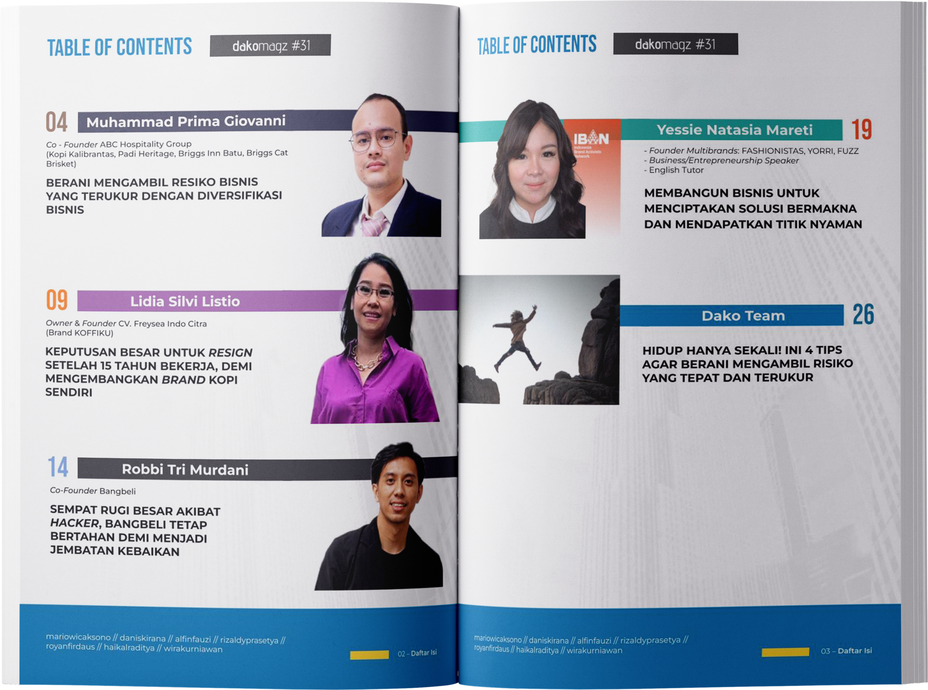 Bukan sekadar menceritakan profil seorang tokoh, namun DAKOMAGZ juga memberikan insight-insight menarik dari narasumbernya. Sehingga Anda bukan hanya tahu kisah mereka, namun dapat dijadikan inspirasi dan pelajaran berharga dalam hidup Anda.